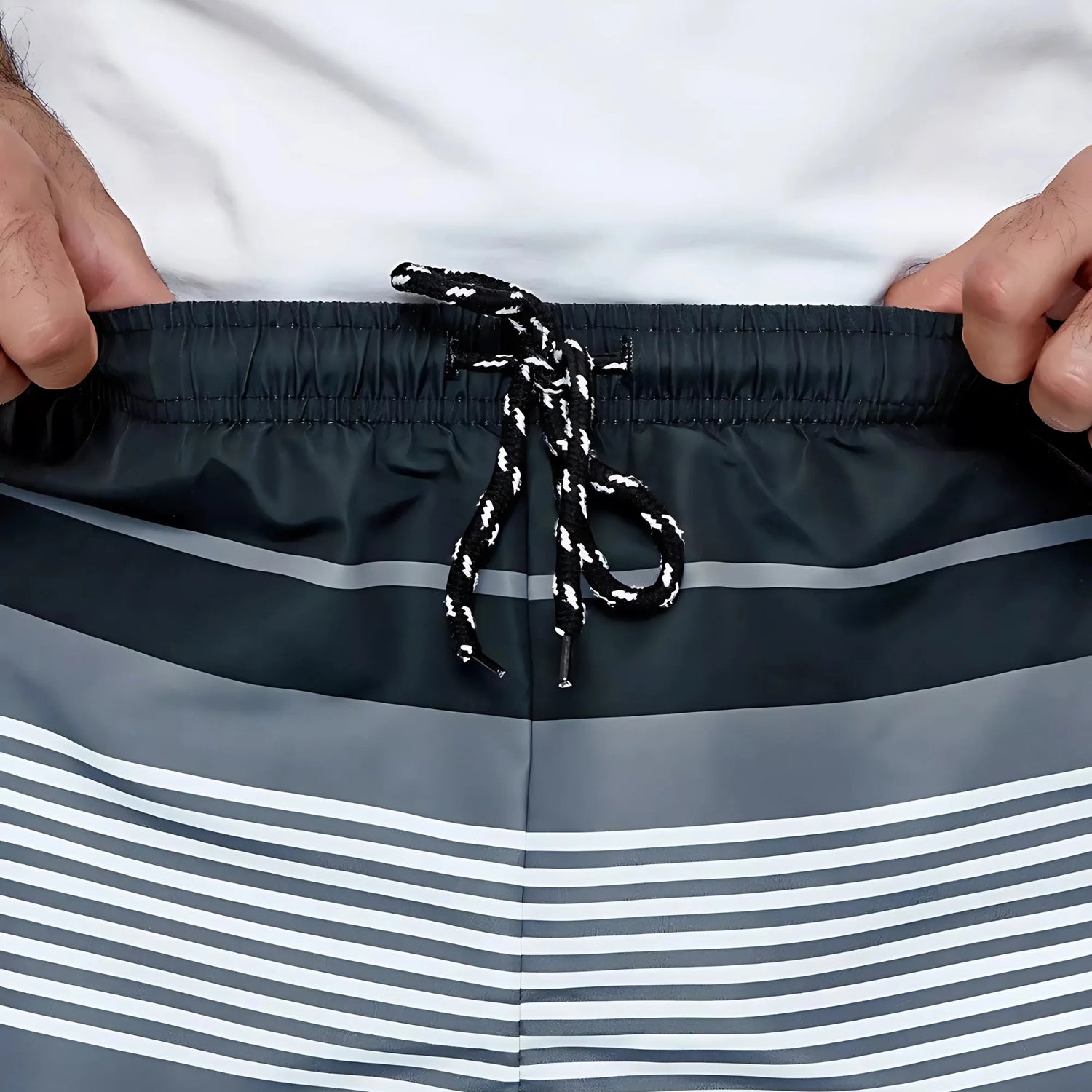 - Taille élastique avec cordon de serrage.